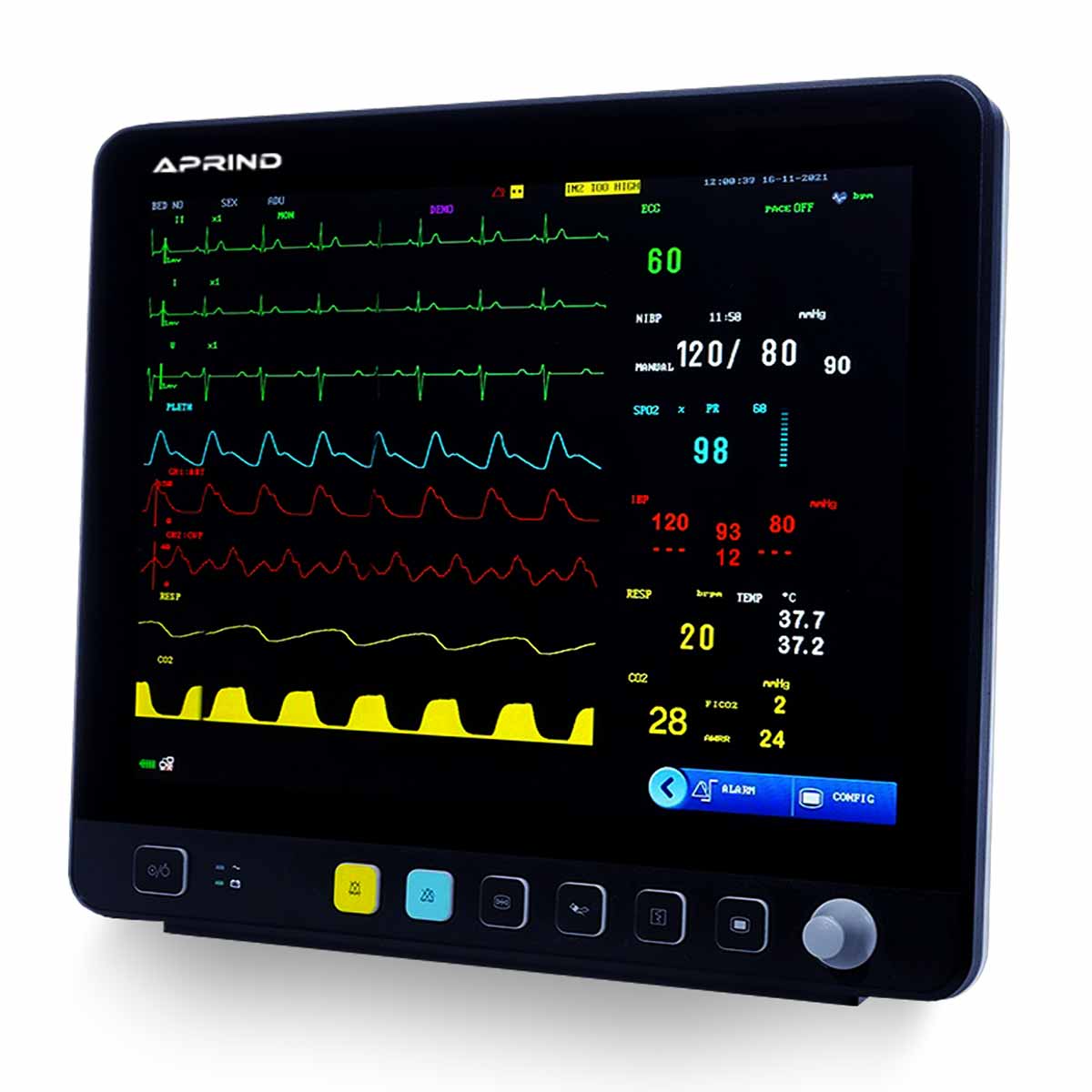 The Patient Monitor PSALMS displays as many as eight colorful waveforms on a crisp, high-resolution 15-inch touch-screen that optimizes the speed of patient care
